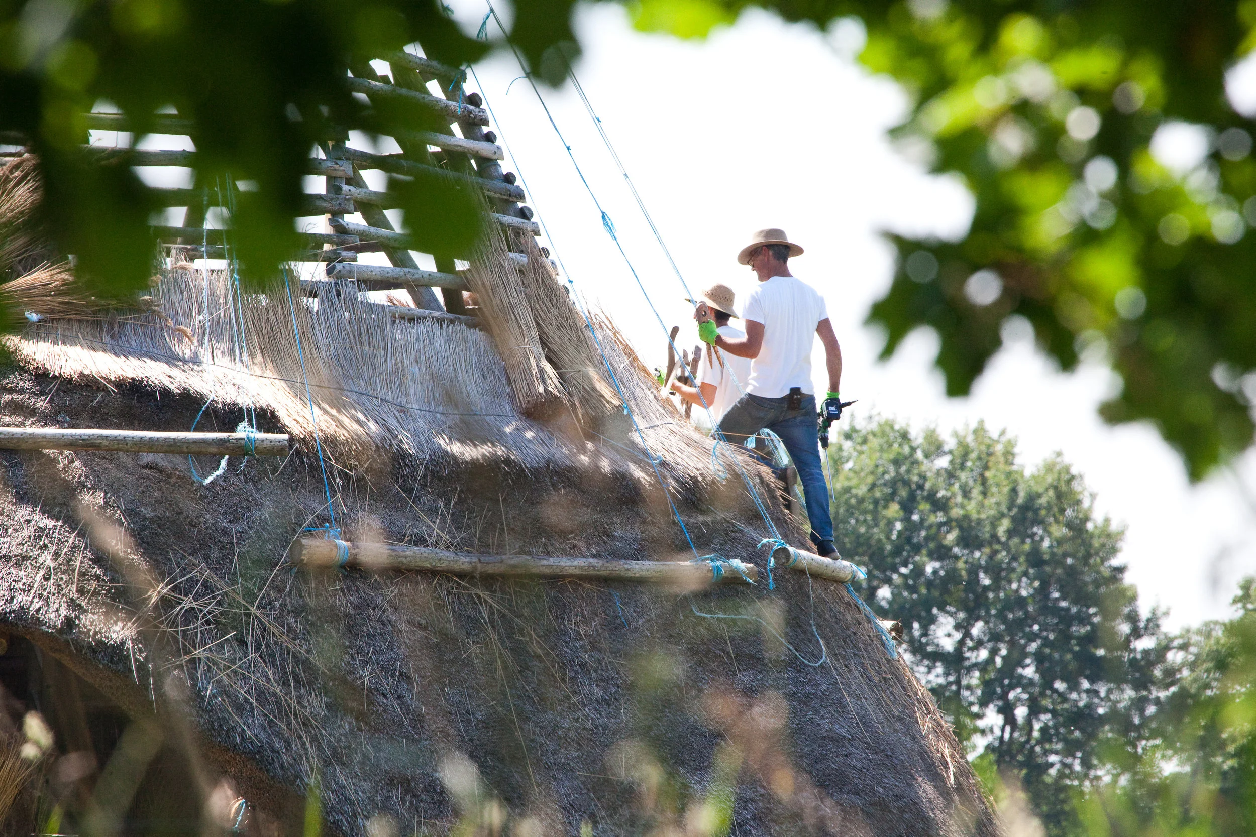 Amazingly, Casper single handedly thatched up to half of the roof structure. Even with the acknowledgment from his thatching mentor the roof was too much for him to complete alone. It was now that Casper reached out for help…
